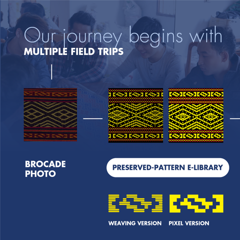 Brocade patterns are made up of different shapes: triangles, rectangles, squares, circles, straight lines, zig-zag,... Each pattern has a meaning which is the story the weavers want to tell. Therefore, Ethnicity focuses on collecting information about the meanings of those brocade patterns to promote their spiritual beauty and historical values.